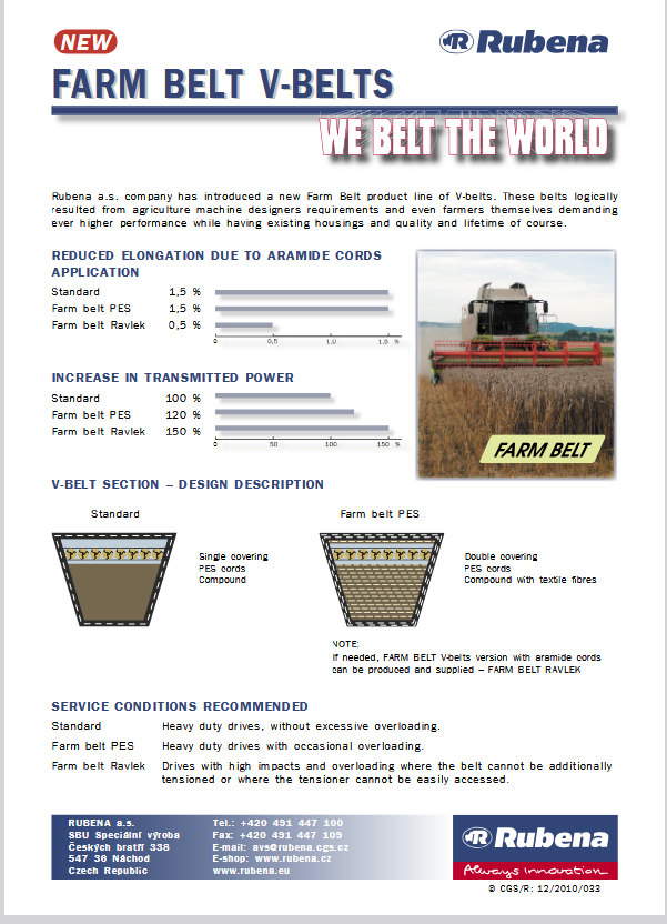 The company has distinguished itself as the exclusive importer of Rubena belts from the Czech Republic, part of the global Trelleborg Group, a prestigious brand that guarantees reliable European quality and high-efficiency performance.